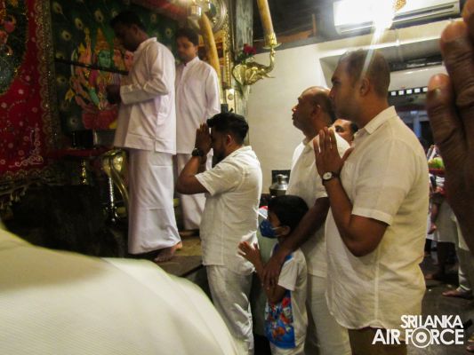 An “Ashirwadha Poojawa’’ which invoke blessings to the SLAF Station Weerawila was conducted at Katharagama Kiriwehera Rajamaha Viharaya and Ruhunu Katharagama Maha Dewalaya with the presence of the Commanding Officer, officers, airmen and airwomen on 31 May 2022.