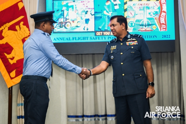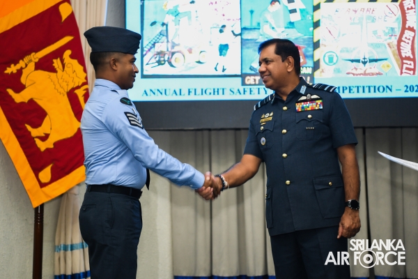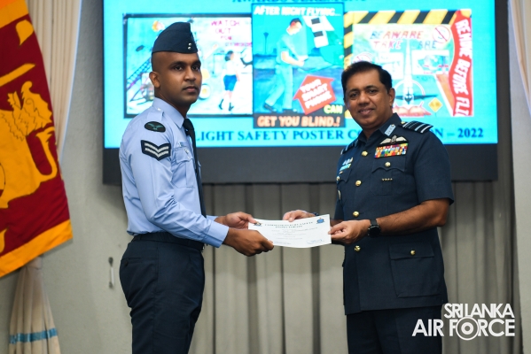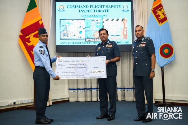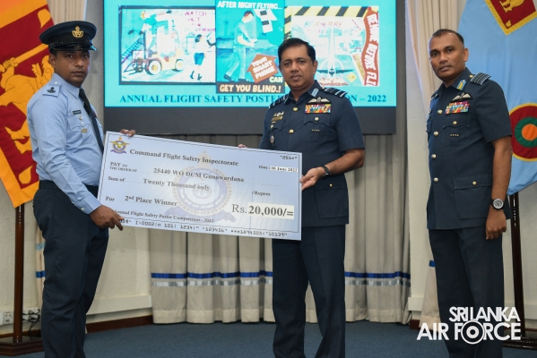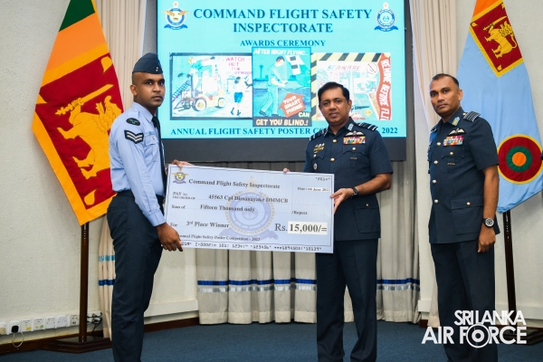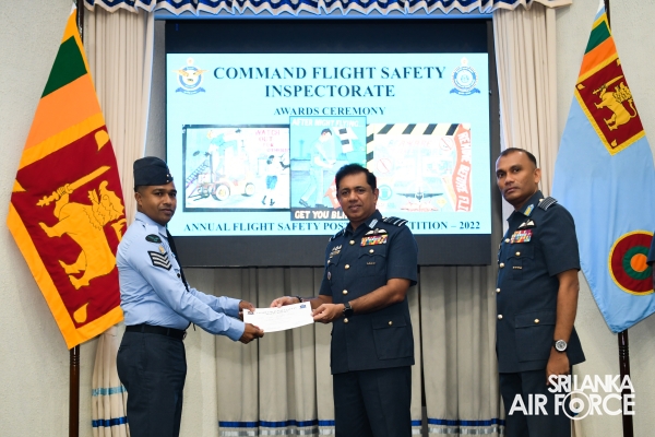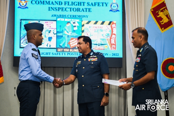 Chief Flight Safety Inspector (Flying) Group Captain Madura Dias, Flight Safety Inspector (Rotor Wing) Wing Commander Venu Silva and Staff Officer Flight Safety (Engineering) Wing Commander Nandaka Wickramasinghe, the coordinator of the annual flight safety poster competition were present at the occasion.