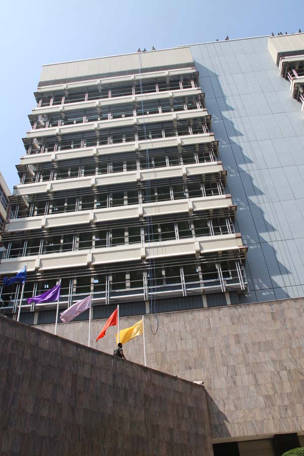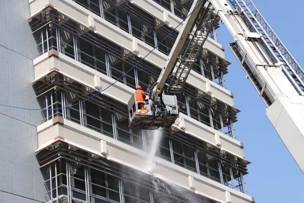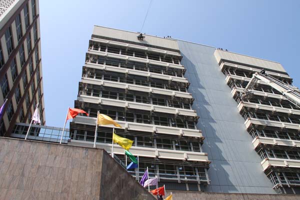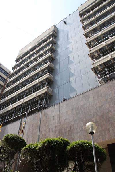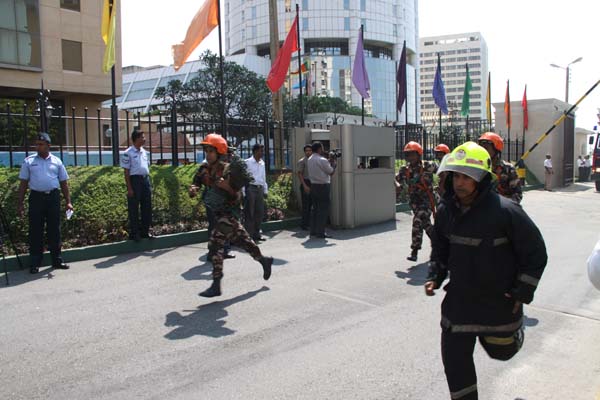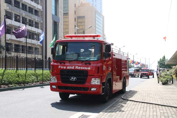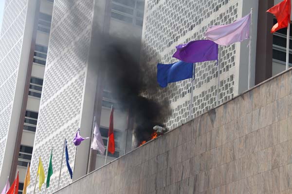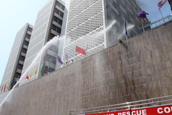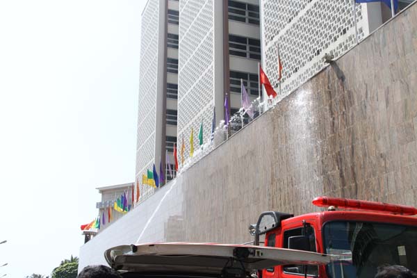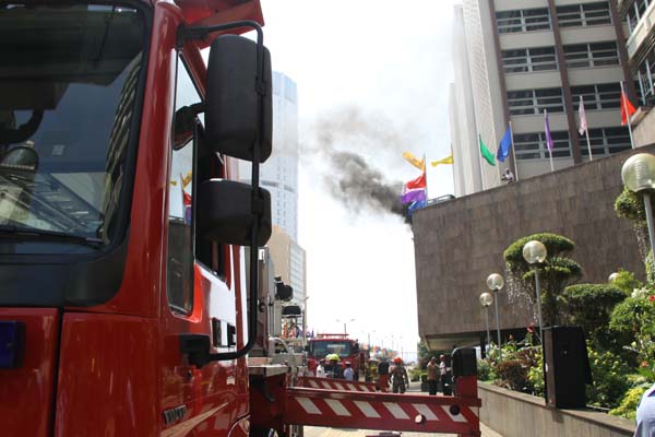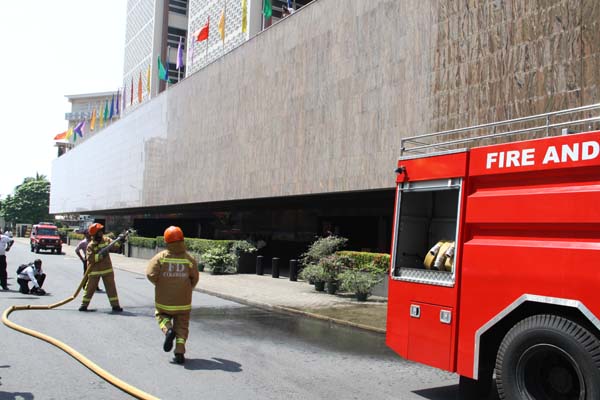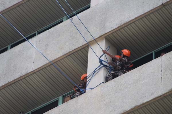 The Fire unit had planned a rescue operation of the employees in 3 categories and employees were made aware of the rescue patterns accordingly. At the sounding of the fire alarm, Central Bank personnel evacuated the building within a matter of a few minutes as a simulated fire blazed atop the front of the complex. The second and third phases of the rescue operation focused on taking personnel who were trapped within the building to safety.