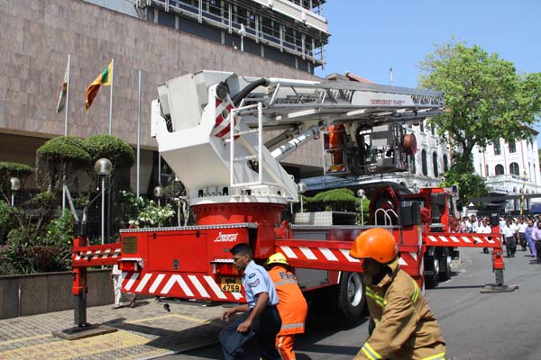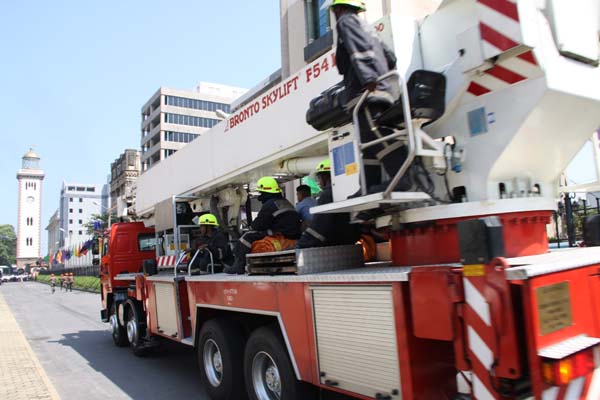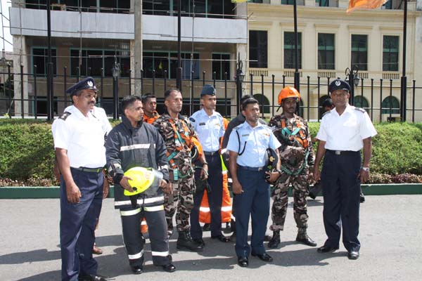 35 personnel from the SLAF Fire Unit joined forces with 15 firefighters from the Colombo Fire Brigade for a fire drill which was designed primarily to prepare the employees in the complex for an emergency situation.