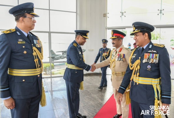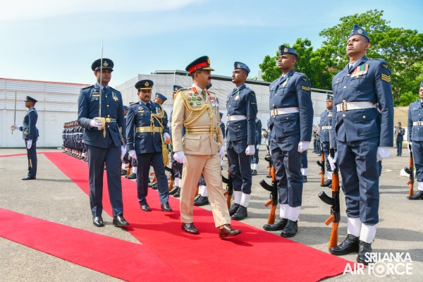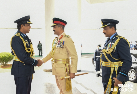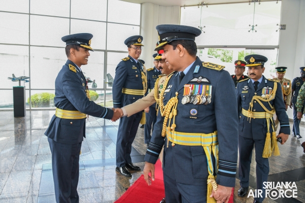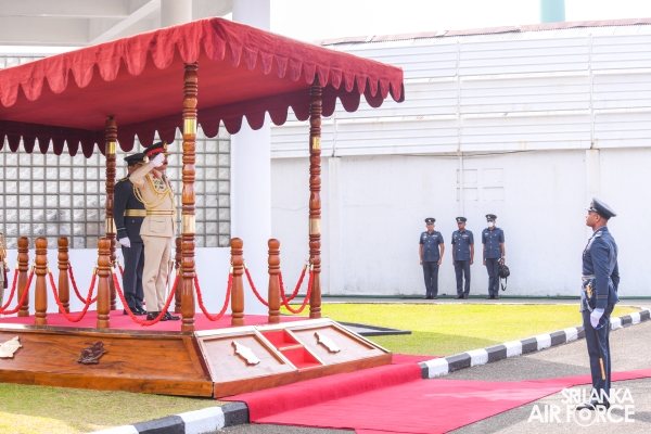 The Army Commander was received by the Commanding Officer of SLAF Station Colombo, Air Vice Marshal Dilshan Wasage and the Guard of Honour was conferred by the Colour Wing of SLAF.