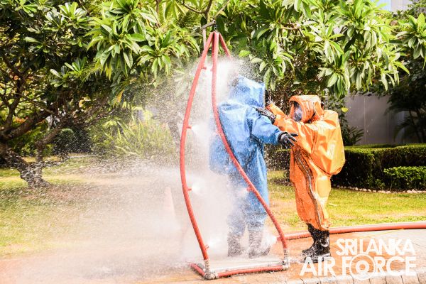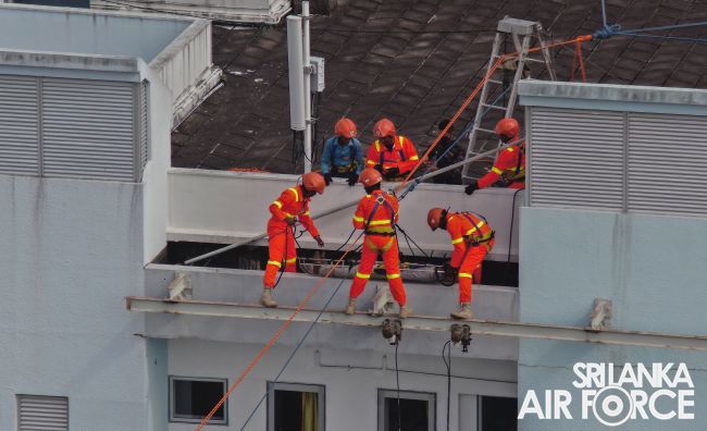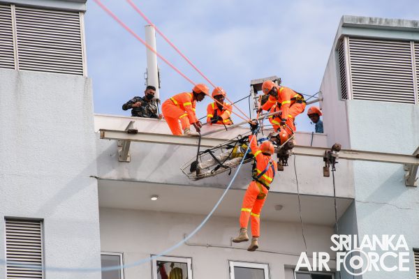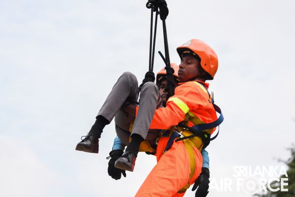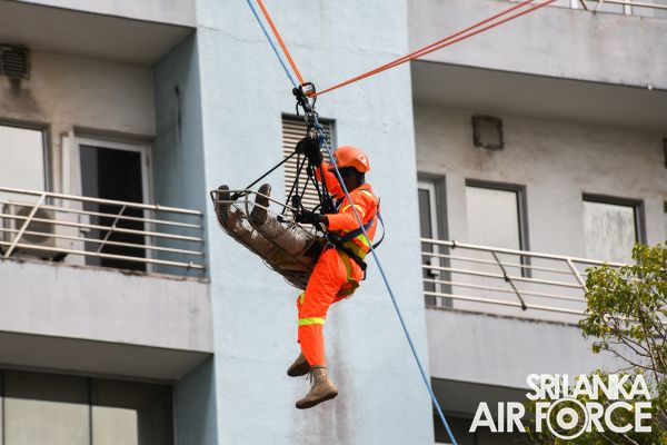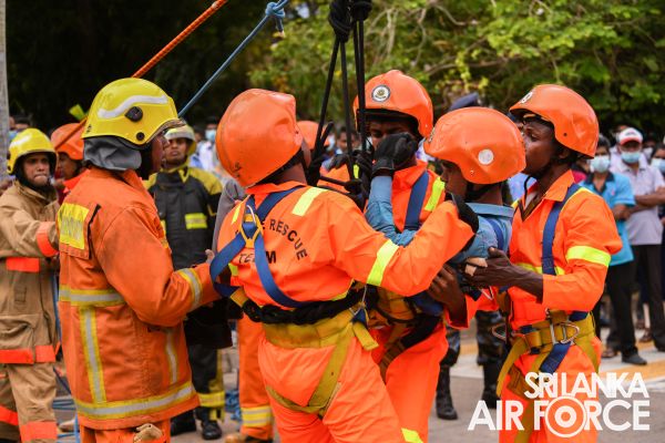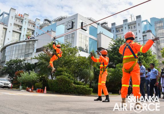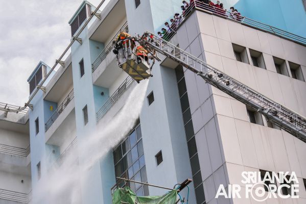 The SLAF Firefighters demonstrated the rescue tactics consisting rope rappelling which portrayed the operational readiness, firefighting and Hazardous materials (Hazmat) response capabilities.