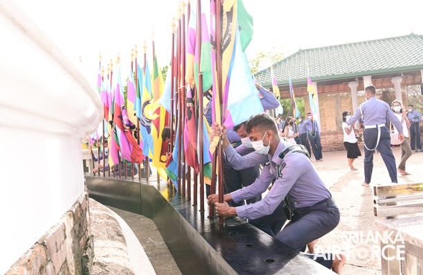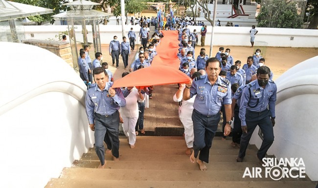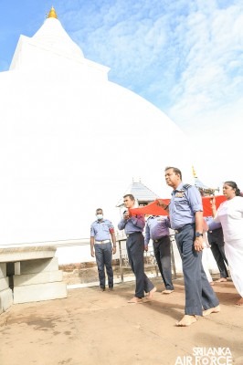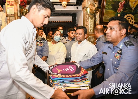 For the first time in SLAF’s history conducted a Flag Blessing Ceremony and a ‘Kapruk Pooja’ to invoke blessings on the occasion of celebrating 71 illustrious years of a legacy at the Katharagama sacred ‘Kiri Vehera’ on 27 August 2022. This initiative was taken this year on the instructions of the Commander of the Air Force, Air Marshal Sudarshana Pathirana. The event was also held under the auspices of the Commander of the Air Force along with his lady, Chairperson of the SLAF Seva Vanitha Unit, Mrs. Charmini Pathirana.