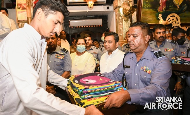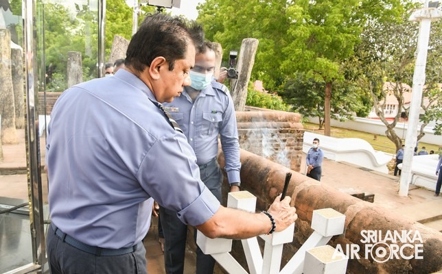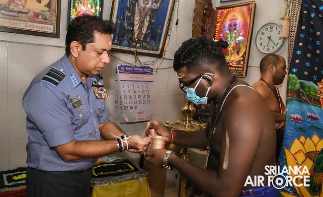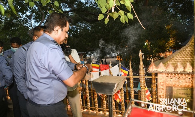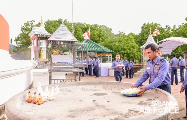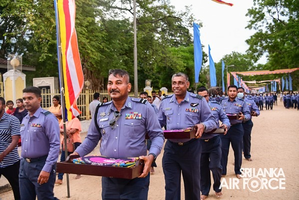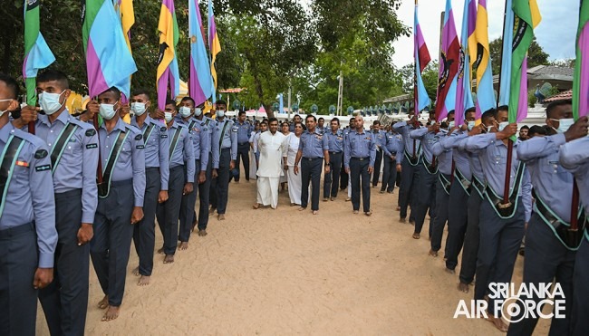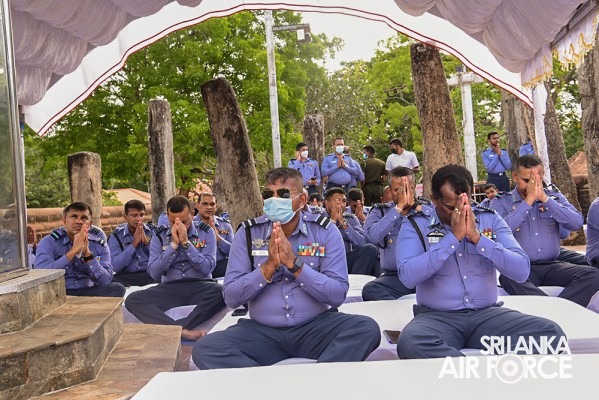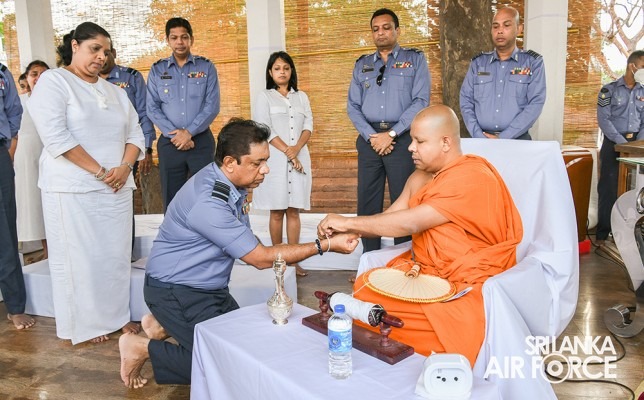 The solemn event was facilitated by Basnayake Nilame of Kataragama Devala, Dilshan Gunesekara, hosted by SLAF Station Weeravila under the close supervision made by Group Captain Asoka Koralage and was attended by the Member of the Air Force Board of Management along with their ladies, Commandant, Base Commanders, Commanding Officers, Senior Officers, Airmen and Airwomen representing the entire Air Force.
