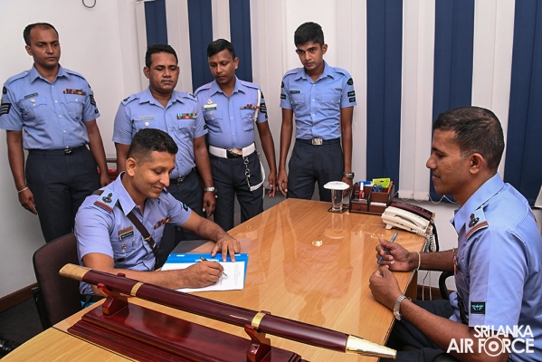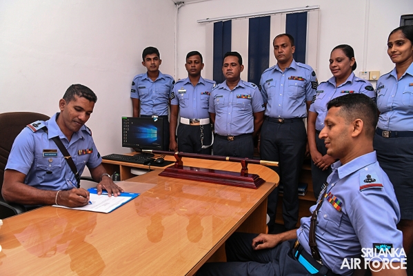 The Outgoing Command Master Warrant Officer of the SLAF, Master Warrant Officer DDAP Dissanayake handed over his duties to Master Warrant Officer WMSR Jayasinghe at the Commander’s Office. The Commander appreciated the valuable and dedicated service of Master Warrant Officer Dissanayake during his career in the Air Force and the tenure as the Command Master Warrant Officer.