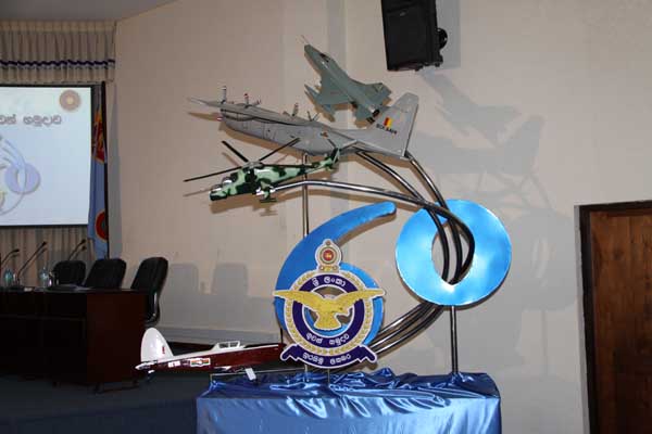 A highlight at the event was the unveiling of the official logo for the 60th anniversary by the Commander of the Air Force. The skillfully constructed logo symbolizes the journey of excellence in aviation of the organization. The official logo will be carried on specially designed float during the annual "Guwan Hamuda Papedi Sawariya" and will be the symbol under which all commemoration activities will be conducted for the 60th Anniversary commencing this evening. After the cycling event the Logo will be carried from Colombo to Buttala on a specially designed float once again for the Deyata Kirula Exhibition where it will be on display. The construction of this symbolic logo was done by Squadron Leader Surendra Munasinghe, whilst the aircraft models on it were manufactured by the SLAF Model Aircraft workshop at SLAF Station Ekala.