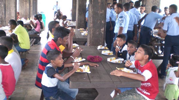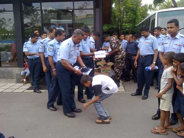 A Tea party was organized at Museum cafeteria and further, stationery, library books and gift packs were distributed among all children present This event was organized by the Commanding Officer Group Captain Bandula Herath and staff at the E & T Wing SLAF Base Ratmalana.