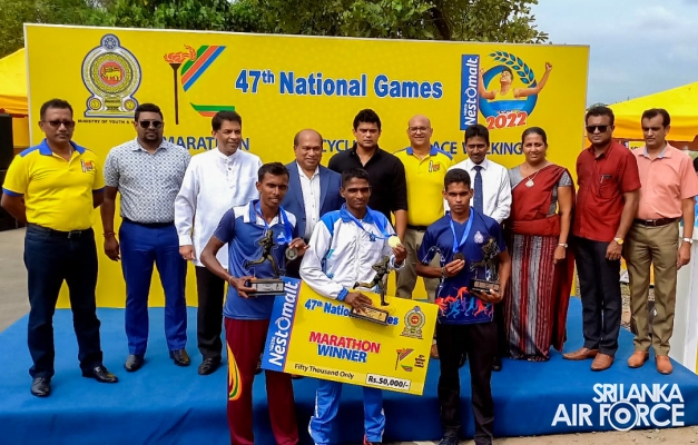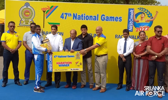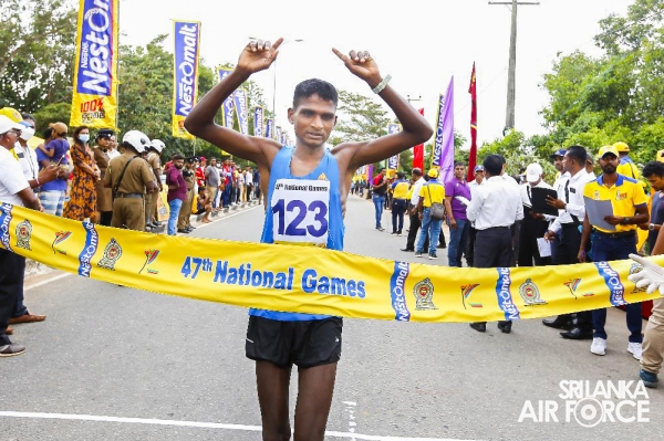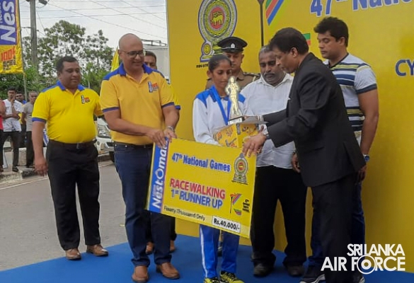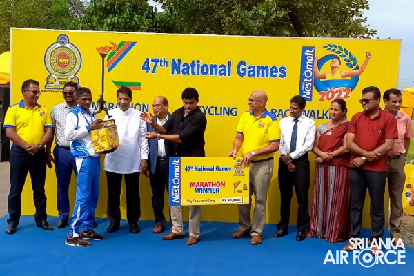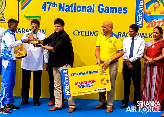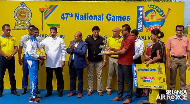 During the National Marathon event, Leading Aircraftman Rathnapala TW secured the first place and won the Gold Medal in 42km long Men's Race recording the best time after five years in the National Marathon while Leading Aircraftman Perera MTIS recorded the 8th place. Leading Aircraftwoman Dilhani THD bagged the Silver Medal in National Race Walking Women’s category whilst Leading Aircraftwoman Kalyani WHL secured the 4th place respectively.