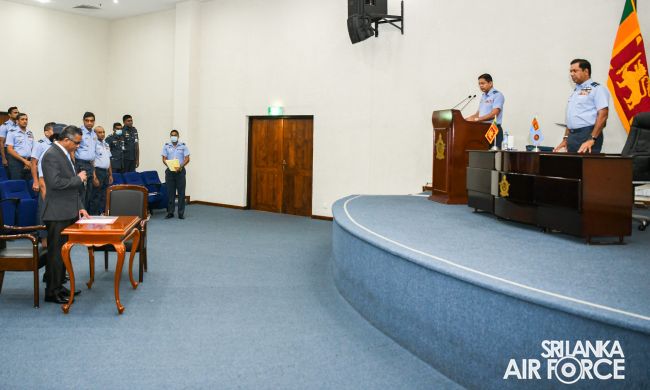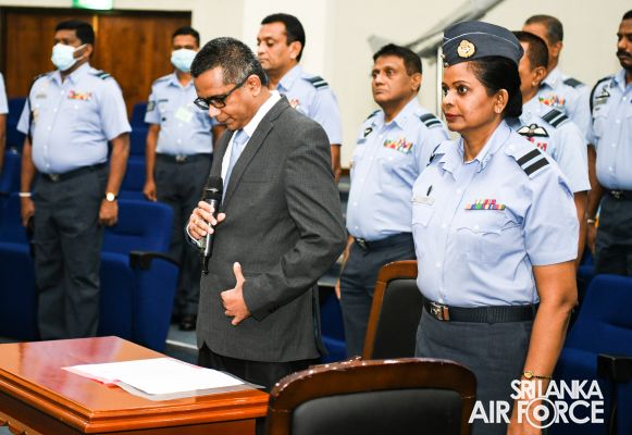 Deputy Solicitor General Mr. Sudarshana De Silva was appointed as the Judge Advocate and he was enlisted in the rank of Air Commodore. The oath ceremony was held at Air Force Headquarters Auditorium with the participation of Members of the Air Force Board of Management and Non-members of the Air Force Board of Management. Air Commodore Sudarshana De Silva is a senior officer in the Attorney General’s Department with experience as a Counsel for more than 24 years. He will be the principal advisor on aspects of law and procedure for Courts Martial to the prosecution and the accused relating to charges and trials.