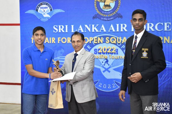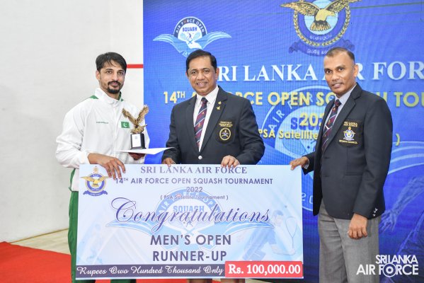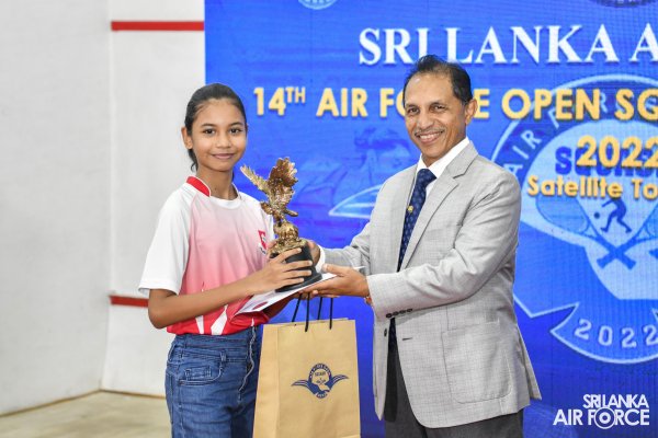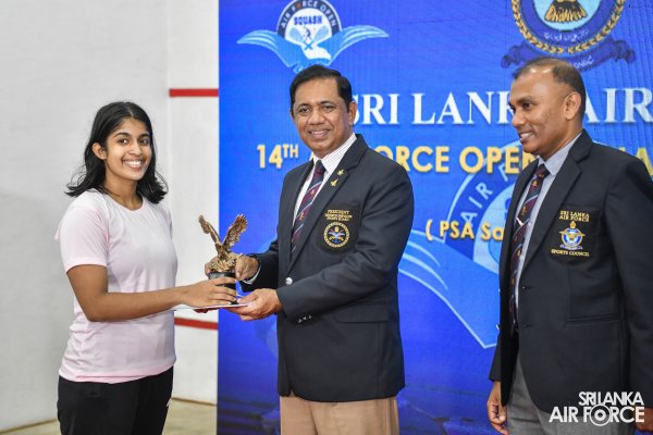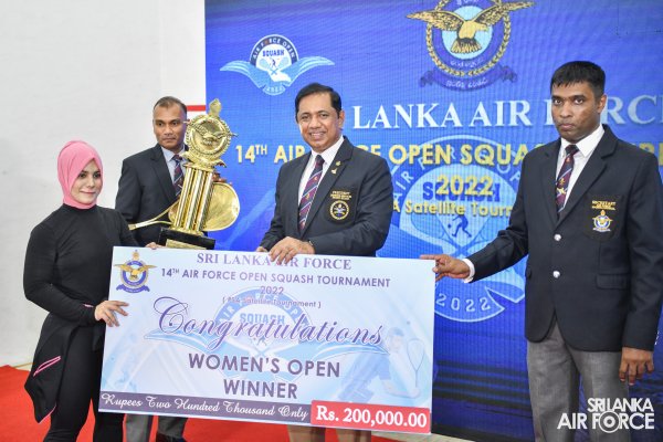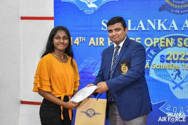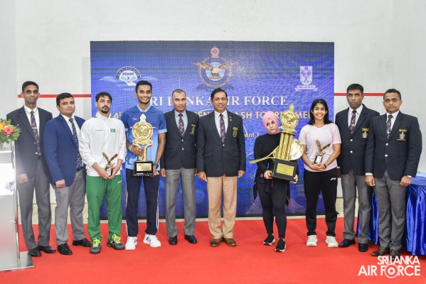 The Air Force Open PSA (Professional Squash Association) Satellite Squash Championship-2022 concludes on a high note at the Squash complex, SLAF Base Ratmalana yesterday(12 November 2022). The finals of the Women’s Open and Men’s Open categories and the awards ceremony were live telecasted on Rupavahini Channel Eye. The occasion was graced by Commander of the Air Force, Air Marshal Sudarshana Pathirana as Chief Guest along with Chairman Air Force Squash, Group Captain Pujana Gunathilake, Secretary Air Force Sports Council and Vice President Sri Lanka Squash Federation as well as Organizing Committee Head of Sri Lanka Squash Tournaments, Group Captain Eranda Geegane, Secretary of Sri Lanka Squash Federation Eranga Alwis,Members of the Air Force Board of Management and other distinguished guests from Sri Lanka Air Force and Sri Lanka Squash.