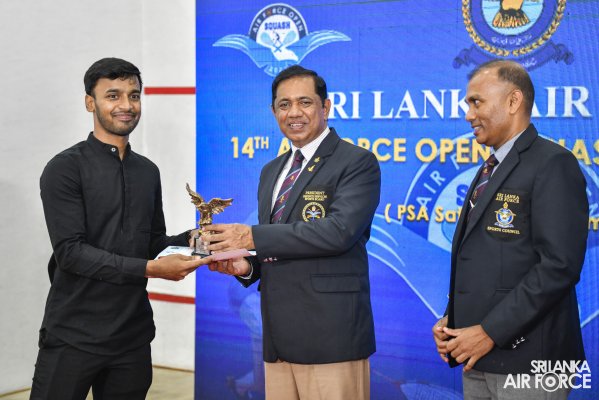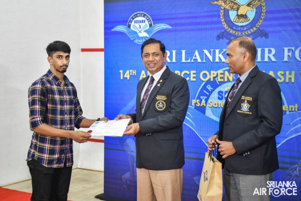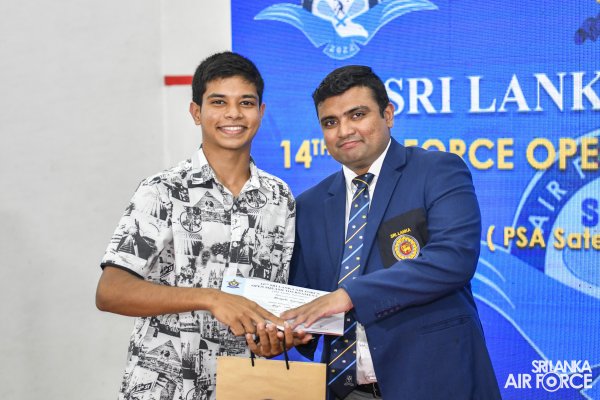 The tournament's favorite, Farhan Zaman, a former world No. 47 and gold medalist at the South Asian Games in 2016, was on his way to victory after taking the first two sets at scores of 11/7 and 11/9. However, Laksiri made a great effort to win the third set at 12-10 before continuing to win the next two sets at 13-11 and 11-6 to secure the Air Chief Marshal P H Mendis challenge trophy.