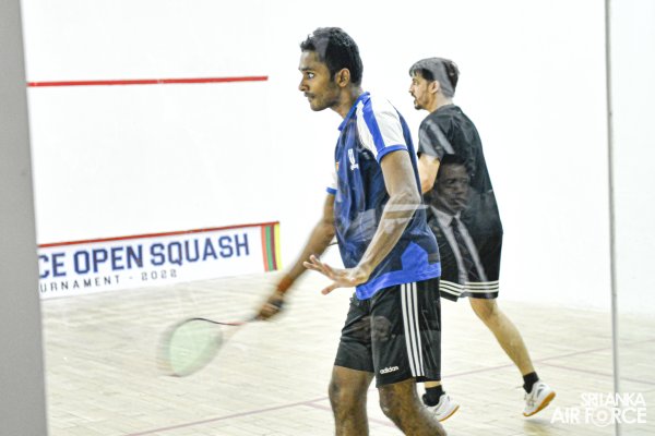 Ravindu Laksiri, the present and nine-time national champion who recently won his 1st PSA international tour, sustained his amazing performance when he defeated Pakistan's Farhan Zaman to succeed in the Men's Open competition at the Air Force Open PSA Satellite Squash Championships- 2022