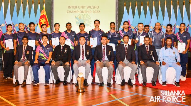 The Inter Unit Wushu Championship 2022 was held at the Indoor sports complex SLAF Base Katunayake from 30 November 2022 to 02 December 2022. The finals and awards ceremony was held at the same venue yesterday (02 December 2022) with the graceful presence of Base Commander SLAF Base Katunayake, Air Vice Marshal LH Sumanaweera as the Chief Guest.