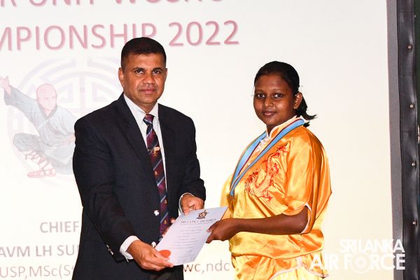 The event was conducted under 08 weight categories for Men and 06 weight categories for Women under new rules and regulations of the International Wushu Federation (IWUF). The Men’s Championship was clinched by SLAF Academy China Bay whilst the Women’s Championship was secured by SLAF Station Colombo. SLAF Combat Training School Diyatalawa emerged as the Runner-up in Men’s category and SLAF Academy China Bay in Women’s category.