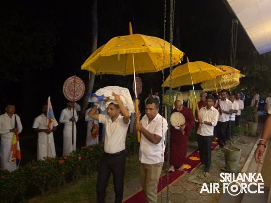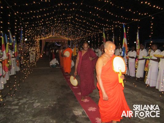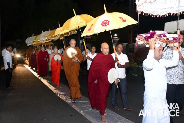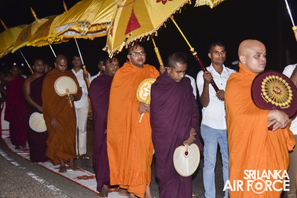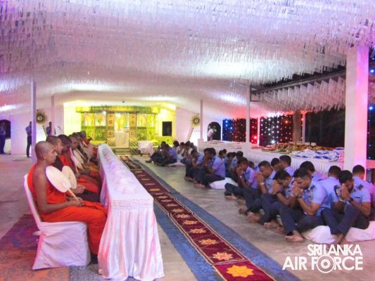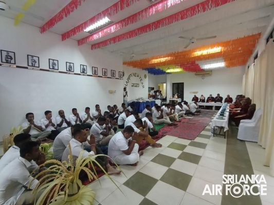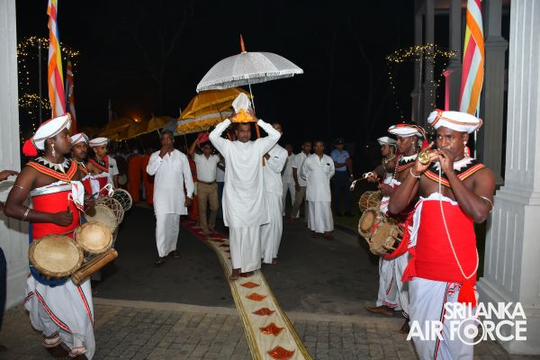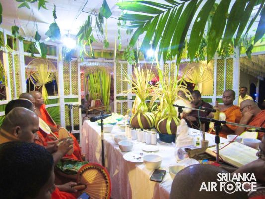 Consecutively for the third time, all-night Pirith Chanting programme was held simultaneously at the Academy, all Bases and Stations located throughout Sri Lanka in parallel to its main ceremony at Air Force Headquarters to invoke blessings on all personnel of the Air Force and their families, as well as on the entire nation to have the strength and courage to move forward through these challenging times in the New Year 2023.