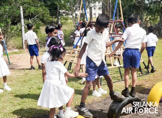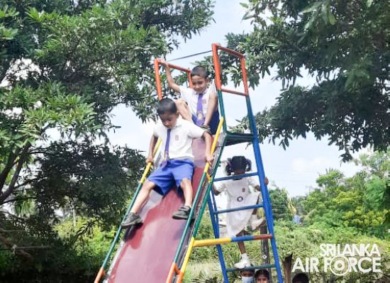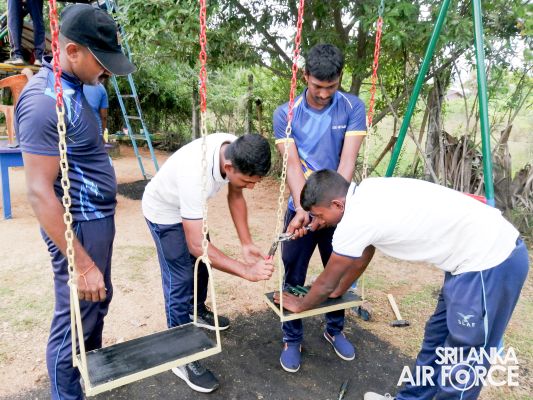 As sequel to the 4th Anniversary of the Squadron, the customary working parade was held with the participation of all the members of the Squadron, which was reviewed by the present Commanding Officer, Group Captain RMCJK Ratnayake. As part of a social responsibility initiative aimed at restoring the eco system, the Squadron distributed saplings among sister formations and also conducted a tree planting programme in academy grounds. Moreover, a cooperative social responsibility project was conducted at the primary school in Abhayapura, Trincomalee, by completely renovating the students' play area, which had been unusable for eight long years. Eventually, a Pirith chanting programme was held in the Squadron premises, which was presided over by the venerable Maha Sangha from Sri Bodhirajaramaya Temple at China Bay, to evoke blessings for the Squadron and the serving personnel, including their families.