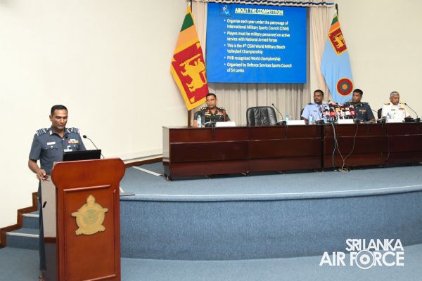The press briefing was chaired by the Chairman of the Organizing Committee of the CISM World Military Beach Volleyball Championship, Director General Logistics in the Sri Lanka Air Force, Air Vice Marshal Nishantha Thilakasinghe, while the incumbent Directors of Sports from Sri Lanka Army, Brigadier Nalin Bandaranayake and Sri Lanka Navy, Commodore Roshan Athukorala and the Secretary of the Organizing Committee of the CISM World Military Beach Volleyball Championship, Group Captain Chrishantha Fernando and Secretary Air Force Sports Council, Group Captain Eranda Geeganage as panel members. A large number of journalists from the electronic and print media were also present at the occasion.
