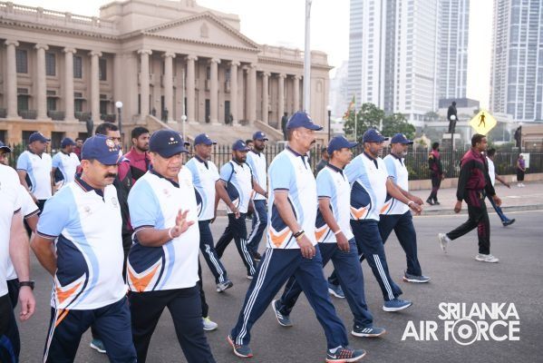 The International Military Sports Council (CISM) Day Run, which was organized by the Sri Lanka Air Force this time under the guidance of President Defence Services Sports Board and Commander of the Air Force, Air Marshal Sudarshana Pathirana was flagged off this morning (18 February 2022) at the Riffle Green Ground, Colombo by the Secretary to the Ministry of Defence, General Kamal Gunaratne (Retd). The Chief of Staff of the Sri Lanka Air Force, Air Vice Marshal Udeni Rajapakse participated in the run along with the members of the Air Force Board of Management. The Secretary General of International Military Sports Council (CISM), Captain Roberto Recchia from the Italian Navy, Chief of Defence Staff, General Shavendra Silva, Commander of the Army, Lieutenant General Vikum Liyanage, Commander of the Navy, Vice Admiral Priyantha Perera also participated for the event. Over a hundred personnel from each service participated for the ‘CISM Day Run’ which covered a distance of nearly 2.5 km.