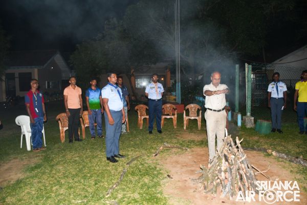 The campfire ceremony was graced by the Deputy Chairman of SLAF Air Scout, Air Commodore Sujeewa Ponnamperuma, and the Assistant District Commissioner of Colombo District and Senior Air Scout Master, Mr. Rohitha Stainwall. Moreover, the training camp featured four qualified guest lecturers, namely Mr. Neel Nandasiri - Leader Trainer of National Scout Headquarters, Mr. Geeth Ramesh - Assistant District Commissioner Planning of Colombo District, Mr. Nimal Fernando - Leader Trainer of National Scout Headquarters, and Mr. Miral Ariyapala - Assistant District Commissioner Media & Public Relation of Colombo District.