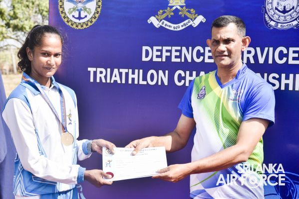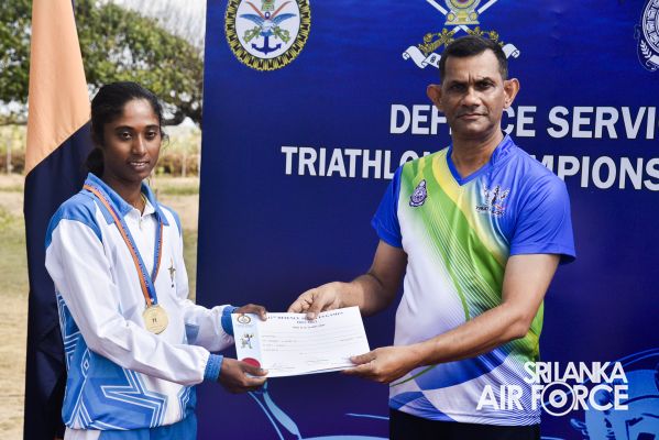 The 12th Defence Services Triathlon Championship 2023 was held on 04 April 2023 at the SL Navy - Walagamba, Thiriyaya camp premises. The awards ceremony was held at the same venue. Commander of the Eastern Naval Area, Rear Admiral HGUD Kumara, graced the occasion as the chief guest.