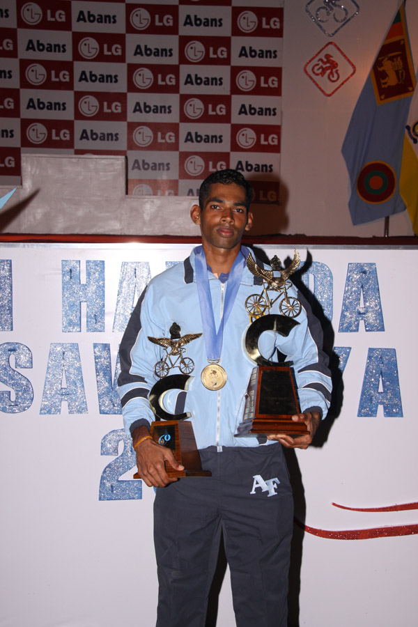 It was Meemanage Perera (Army) who crossed the finish, flagged off by Chairman Air Force cycling, Air Vice Marshal Gagan Bulathsinghala. Meanwhile Dinesh Dhanushka (SLAF) and Sumithra Fernando (Super Wheels) finished 2nd and 3rd respectively at SLAF Unit Koggala.