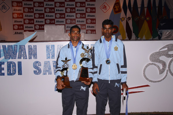 Riders Buddhika Warnakulasuriya and Dinesh Dhanushka brought glory to SLAF with their outstanding performance in the premier cross country cycling tour which was held in four stages and concluded today at Koggala.