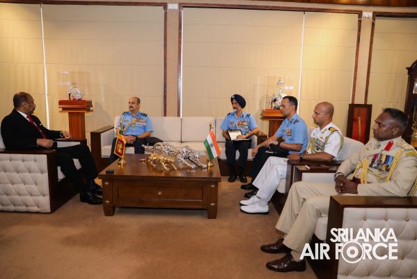 The Chief of the Air Staff was warmly welcomed by Secretary to the Ministry of Defence at the MOD premises. During the call on the Secretary Defence expressed his gratitude for the continuous support and assistance provided by the Indian Air Force to Sri Lanka in various capacities, including joint military exercises and training.