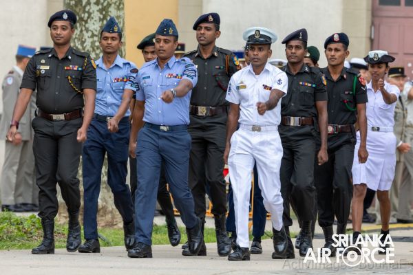 Standing Row Left to Right – XD/80167 L(DIN) PHR Darmapala (Navy), S/725556 L/Cpl Jinadaree PGC (Army), AW/02055 LAC DE Silva KDA (AF), S/282897 L/Cpl Adikari AMPP (Army), 015317 Cpl Nilaweera HPGAS (AF), S/F 101318 L/CPL Udayanga KS (Army), S/R 101412 L/CPL Udayakumari HKM (Army), AW/02017 LAC Dasanayake LKGKK (AF), WH 118385 WAB(PTI) GBHB Darmasri (Navy)