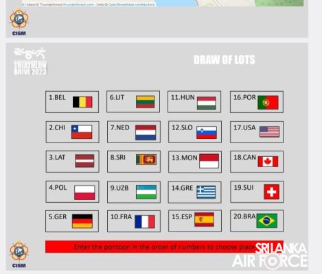 The Sri Lankan Defence Services Triathlon team has departed the country on 4 May 2023 in order to participate for the 24th CISM World Military Triathlon Championship which is scheduled to be held from 5 May 2023 to 9 May 2023 in Brive-la-Gaillarde, France. This Championship will be contested by 22 countries as Uzbekistan, Spain, Portugal, Hungary, Brazil, Luxembourg, Saudi Arabia, Germany, Canada, Belgium, USA, Slovenia, Poland, Chili, Equateur, Greece, Sri Lanka, Nederland, India, Lithuania and Kuwait.