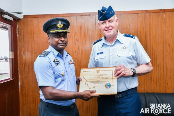The Adjutant General of the State of Montana National Guard and the Head of the Delegation, Major General Peter J Hronek and the crew called on the Commander of the Air Force, Air Marshal Sudarshana Pathirana, yesterday evening (17 May 2023).