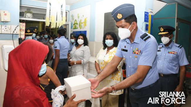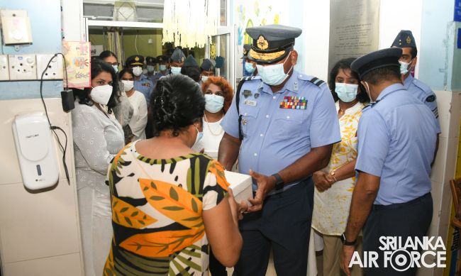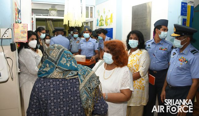 The occasion was graced by the presence of Chairperson of the SLAF Seva Vanitha Unit, Mrs. Charmini Pathirana, who handed over the donation to the Deputy Director of the Apeksha Hospita, Dr. Lalith Kodagoda. The event garnered the attendance of the Chief of Staff, Deputy Chief of Staff, members of the Air Force Board of Management, along with their spouses, senior officers and a cross-section of officers and airmen. The solemn event was conducted under the supervision of Director General Health Services, Air Vice Marshal (Dr.) Lalith Jayaweera and Director General Welfare, Air Vice Marshal Suharshie Fernando.