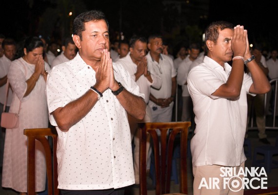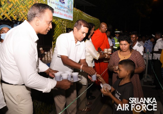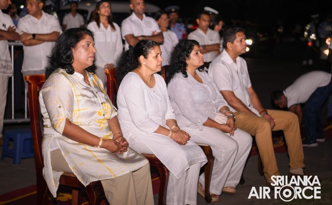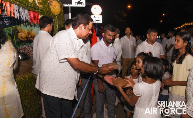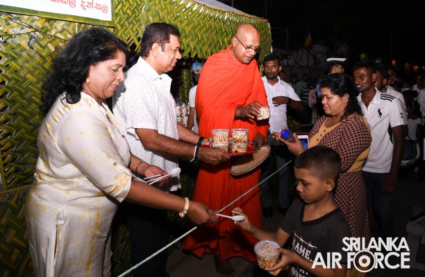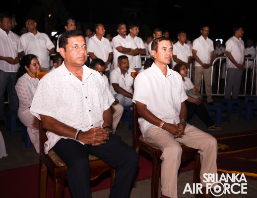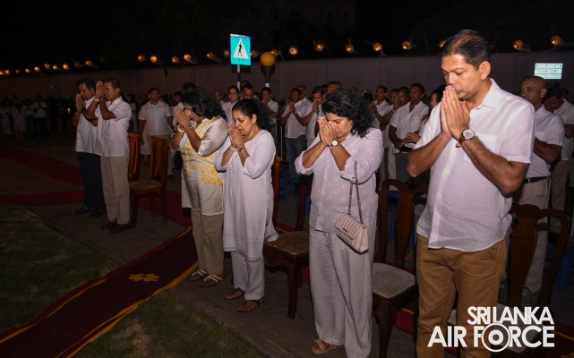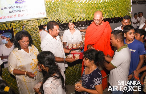 Commander of the Air Force, Air Marshal Sudarshana Pathirana, along with Chairperson Seva Vanitha Unit, Mrs. Charmini Pathirana and Chief of Staff, Deputy Chief of Staff, as well as members of the Air Force Board of Management together with their spouses, Senior Officers, airmen and women of the SLAF, participated in the Poson celebrations. This event, meticulously organized under the close supervision of the Director General Welfare and the Commanding Officer of SLAF Station Colombo, took place today (03 June 2023).
