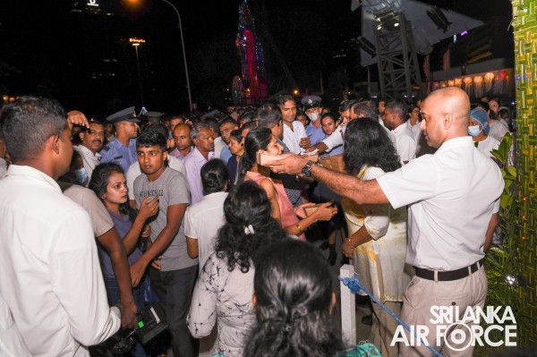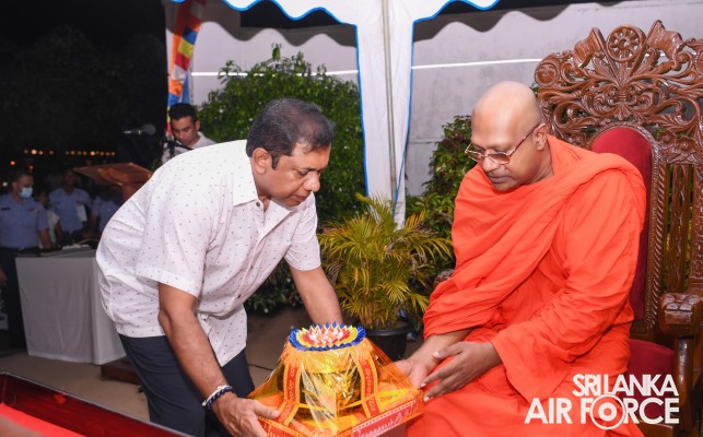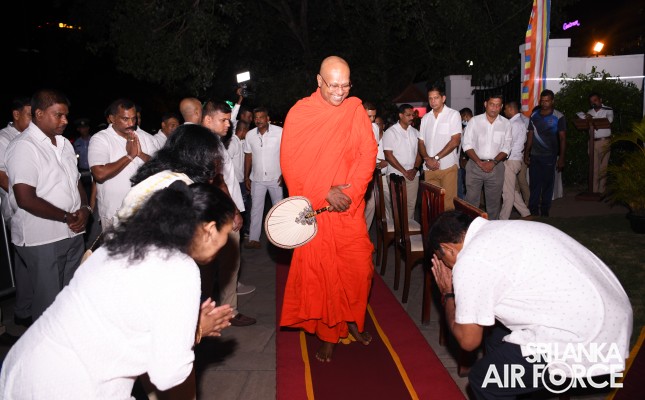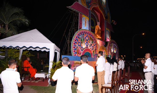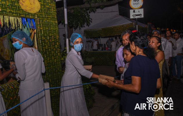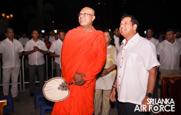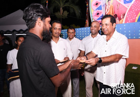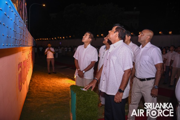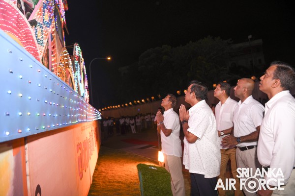 The centerpiece of these celebrations was a captivating pandal, portraying the story known as "Maha Bodhi Jathakaya," which was ceremoniously illuminated by the Commander of the Air Force. The religious observances were presided over by the Chief incumbent of the Gangarama temple, Venerable Dr. Kirinde Assaji Thera prior to the illuminating of the pandal. This vibrant pandal was prominently displayed in the forecourt of the Air Force Headquarters premises, offering a visually stunning experience to all visitors. The pandal remained open for public viewing for a period of three days. In recognition of the dedicated efforts of the team involved in creating this remarkable sight, the Commander of the Air Force granted monetary rewards as a gesture of appreciation.