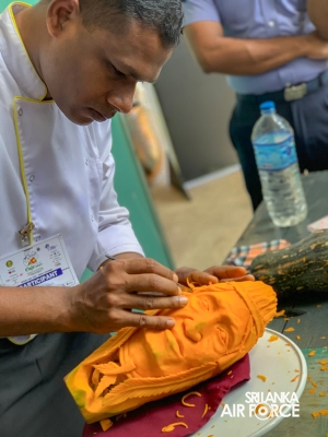 Under the approval of the Commander of the Air Force, Air Marshal Sudarshana Pathirana and the guidance of the Director General Logistics, Air Vice Marshal Nishantha Thilakasinghe, the SLAF Caterers and Food and Beverage Team, consisting of 23 service personnel including two Airwomen, participated in the events including Fruit and Vegetable Carving, Individual Ice Carving, Mocktail Competition, Cocktail Competition, Beer Cocktail Competition, Dessert Competition, Hot Cooking Seafood and Hot Cooking Open Competitions. The team's exceptional performance led to an impressive total of 27 medals won, including 2 gold, 13 silver and 12 bronze.