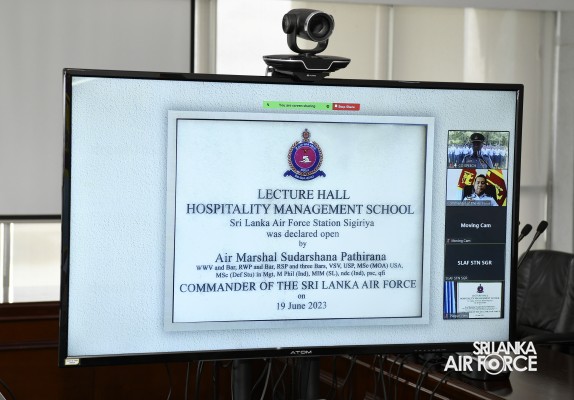 The construction of the lecture hall was undertaken by the Civil Engineering Staff at SLAF Station Sigiriya and was completed within four months. The Commanding Officer of SLAF Station Sigiriya, Group Captain Chaminda Herath, the Chief Instructor of the Hospitality Management School, Wing Commander Sararth Amarakoon, all officers and staff of SLAF Station Sigiriya and a cross-section of airmen attended the opening ceremony.