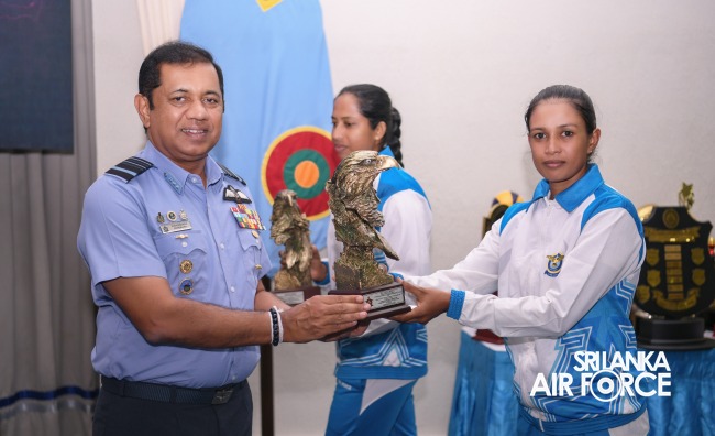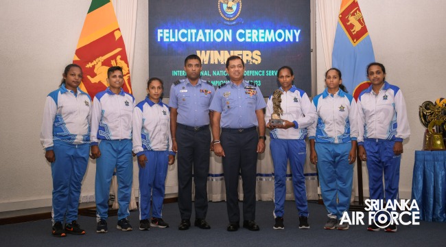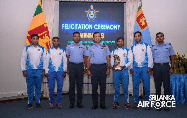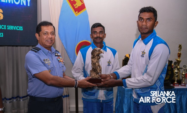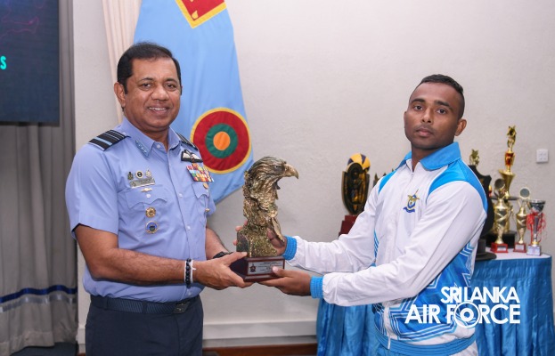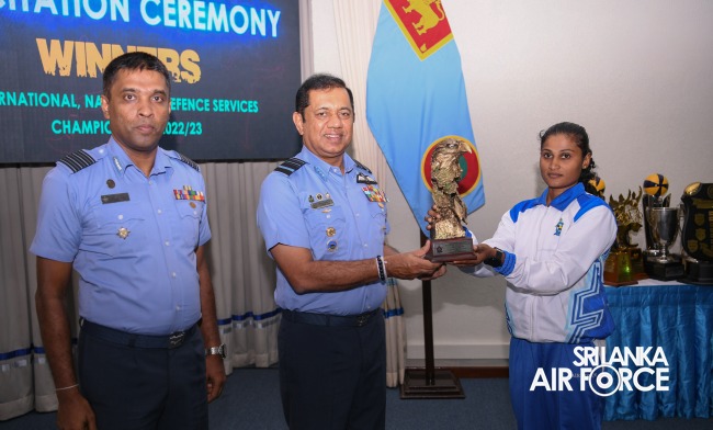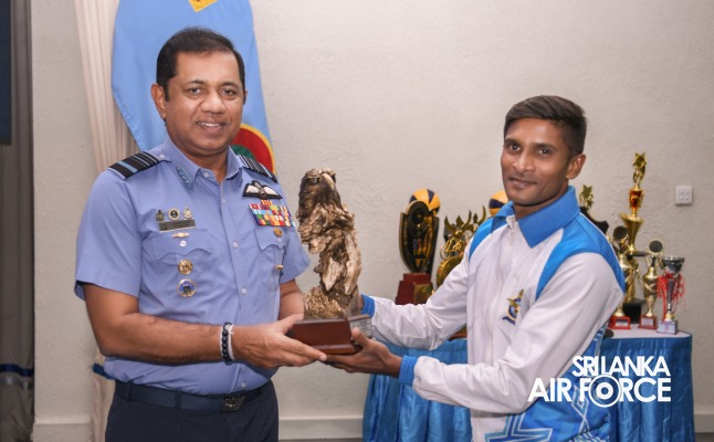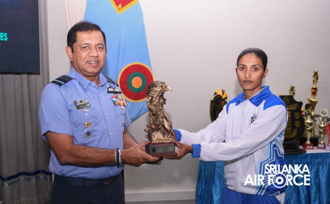 The Commander of the Air Force, Air Marshal Sudarshana Pathirana, in the capacity of President Air Force Sports Council (AFSC) and President Defence Services Sports Board (DSSB), graced the special felicitation ceremony that was held this morning (20 June 2023) at Air Force Headquarters. SLAF Sportsmen in the disciplines of Rugby, Wrestling, Boxing, Judo, Carrom, Beach Volleyball, Squash, Taekwondo and Cycling were felicitated during the ceremony. The personnel from these sports have performed outstandingly at National and International Sports Championships. Meanwhile, keen individuals who performed at National and International levels were also felicitated with special rewards by the President Air Force Sports Council. Apart from the special individuals, the SLAF Rugby Head Coach, Mr. Shamlie Afraz Nawas and Assistant Coach, Mr. Dilan Soyza, SLAF Boxing Coach, Corporal Ariyaratna MDB, the SLAF Wrestling Women’s Team Coach, Corporal Fernando KTW and the SLAF Beach Volleyball Coach, Mrs. BGS Gunasinghe, were appreciated by the Commander for their untiring dedication towards keeping the SLAF flag flying high.