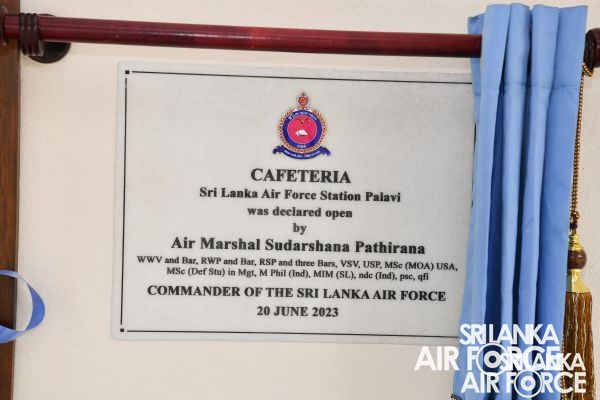 The Commander of the Air Force, Air Marshal Sudarshana Pathirana, officiated the opening ceremony of the newly constructed Welfare Canteen, known as "Cafeteria," at SLAF Station Palavi yesterday (20 June 2023). This remarkable facility was meticulously designed and constructed by the proficient Civil Engineering Staff at SLAF Station Palavi, who successfully completed the project within a commendable timeframe of seven months.