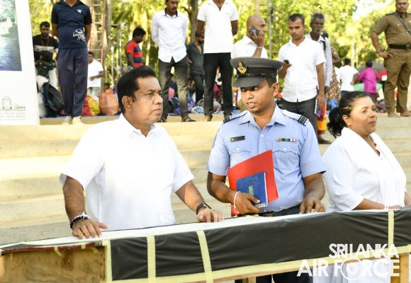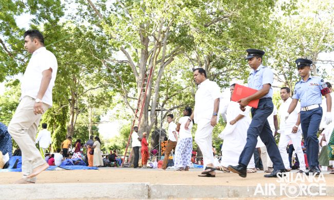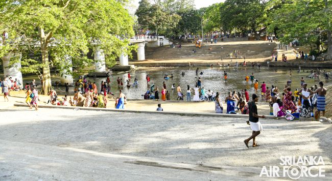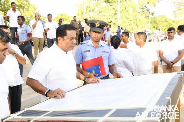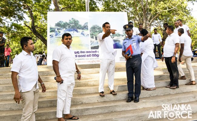 Construction on the new entrance bridge for the Ruhunu Maha Katharagama Dewalaya project began on 16 February 2023, following the directives of the Commander of the Air Force, Air Marshal Sudarshana Pathirana. The Commander conducted a site visit yesterday (25 June 2023) to assess the ongoing advancement of this esteemed project. The primary objective behind the construction of this bridge is to provide a convenient crossing facility for devotees to the revered Ruhunu Maha Katharagama Dewalaya temple. With a length of 446 feet and a width of 60 feet, this bridge aims to enhance accessibility and ease the passage of people to cross the “Menik Ganga”.