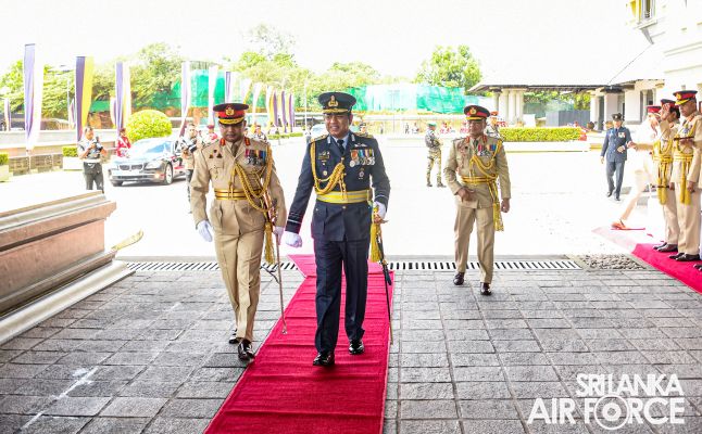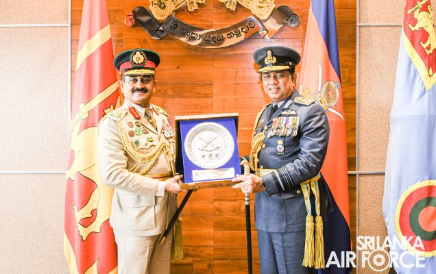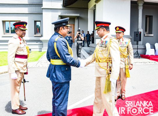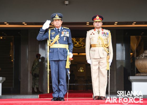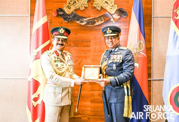 Air Marshal Pathirana was accorded with a Guard of Honour on arrival at Army Headquarters. After a brief discussion, Air Marshal Pathirana conveyed his gratitude for the support extended to the Sri Lanka Air Force during his tenure. The two Commanders exchanged mementos to mark the occasion and the Lieutenant General Liyanage conveyed his best wishes for all future endeavors.