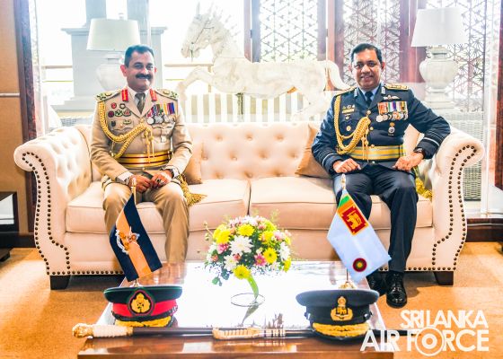 The outgoing Commander of the Air Force, Air Marshal Sudarshana Pathirana, made a farewell call on the Commander of the Army, Lieutenant General Vikum Liyanage at the Army Headquarters today (26 June 2023).