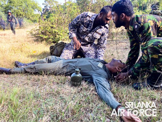 This training module comprises tower training exercises for Abseiling, Rappelling, Fast Rope, Heli Marshaling and Special Rescue Training methods to make it feasible to conduct aircraft training exercises in the same context. Further, the same training modules, including map craft, include GPS handling, terrain navigation marches and GPS marches to find distressed personnel in any terrain and in any situation. The aircraft training exercise phase included Rapid Deployment, Rappelling and Stabilised Body Operations (STABO) exercises, which were conducted at SLAF Base Ratmalana and SLAF Station Morawewa. The Final Training Exercise (FTX) was conducted with the aim of a real-time situational exercise to evacuate distressed aircrew personnel with the combination of hostage rescue missions.