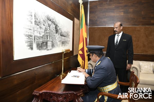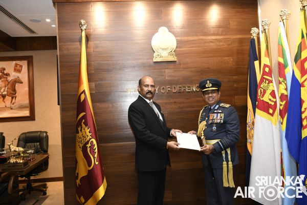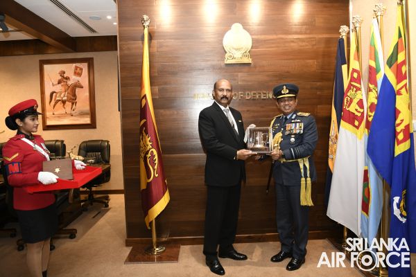 After a brief discussion, Air Marshal Pathirana conveyed his gratitude for the guidance and support during his tenure and presented the Secretary of Defence with a memento to mark the occasion. General Gunaratne (Retd) also reciprocated with the presentation of a memento to Air Marshal Pathirana and praised him for his dedicated and distinguished service to the nation and wished him success in all future endeavors.