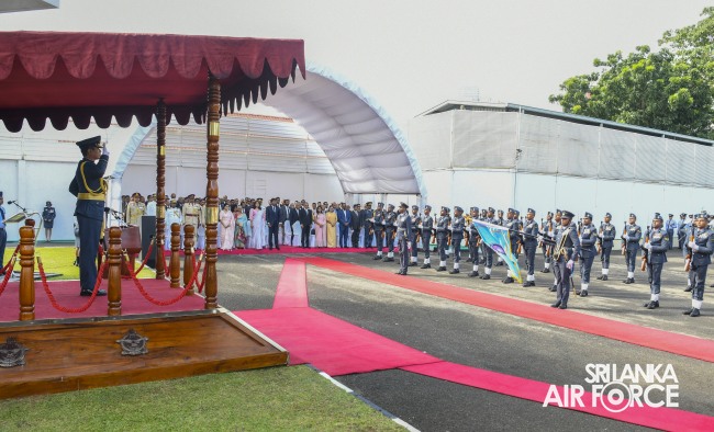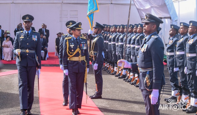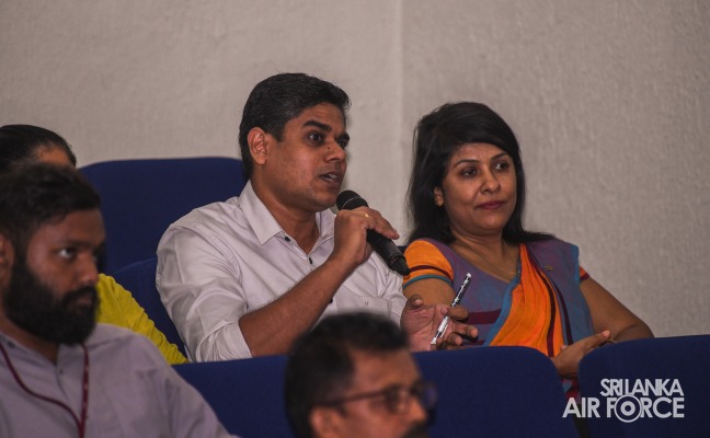Air Marshal Rajapaksa outlined his objectives for the Air Force. Initially, he highlighted the importance of securing Sri Lankan airspace to ensure safe domestic and international flights, foster trust with airlines, facilitate operations and deter unauthorized entry. Additionally, the Commander intends to promote peace by preventing unauthorized access, maintaining strong air defence and addressing drone risks. Further, he seeks to ensure maritime security, conduct Search and Rescue Operations, secure freedom of navigation in Sri Lankan Exclusive Economic Zone (EEZ) and Flight Information Region (FIR). Following that, the focus will be on enhancing 60% of Air Force training with an emphasis on Humanitarian Assistance and Disaster Relief, encompassing rescue operations, disaster relief efforts and aerial monitoring as first responders in emergencies such as tsunamis, floods or earthquakes. Moreover, emphasized the strengthening the SLAF's commitment to UN peacekeeping by boosting the national economy, enhancing domestic flights using air assets, upgrading UAVs for commercial projects and establishing an MI-17 Overhaul Repairing Wing to save foreign exchange. Finally, to expand cyber security measures and initiate space projects in collaboration with the University of Moratuwa and the Arthur C. Clarke Centre.