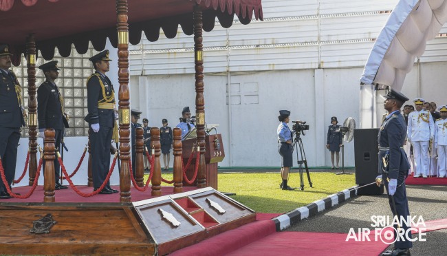 In his inaugural speech to the Air Force, Air Marshal Rajapaksa thanked the President for placing trust in him and appointing him as the 19th Commander of the Air Force. He also conveyed his gratitude to the Secretary to the Ministry of Defence, General Kamal Gunaratne (Retd), for his belief in him. He also stated that he will use the experience gained through his 35 years of service as an active participant in combat air operations during the 30-year-long Humanitarian Operations and managerial skills developed through local and foreign training to lift the Sri Lanka Air Force to heights second to none. The Commander also extended profound gratitude to his alma maters, beloved parents, family members, instructors and all the well-wishers who supported and blessed him on his journey to become who he is today. In conclusion of his address, Air Marshal Rajapaksa highlighted the utmost dedication of all SLAF personnel to deploy a professional Air Force exploiting the core competencies to undertake air operations in support of National Security.