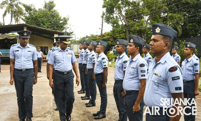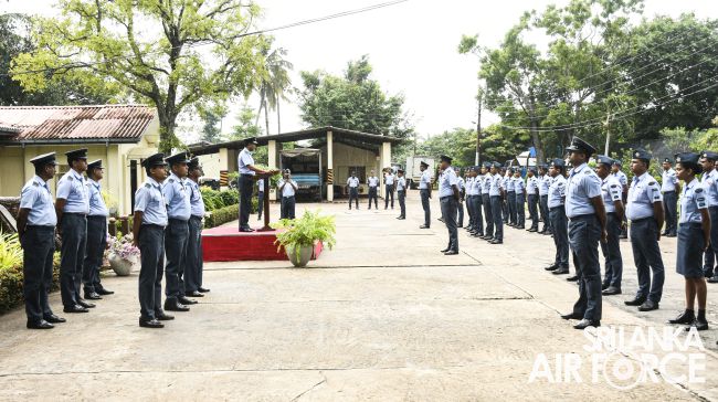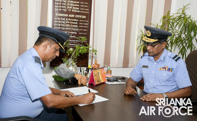 The traditional Handing Over/Taking Over Parade was conducted at the Command Agro Unit, where the outgoing Command Agro Officer, Air Commodore PE Gunawardena USP, BVSc (Hons), MVSc, PG Dip (Def Mgt), FSLCVS handed over command to Group Captain HBD Samaratunga MSc(Flori & Land Arch, Bsc(Agri).