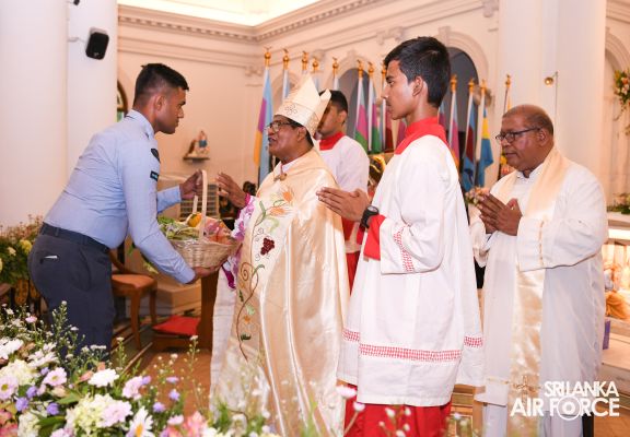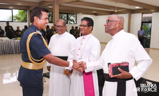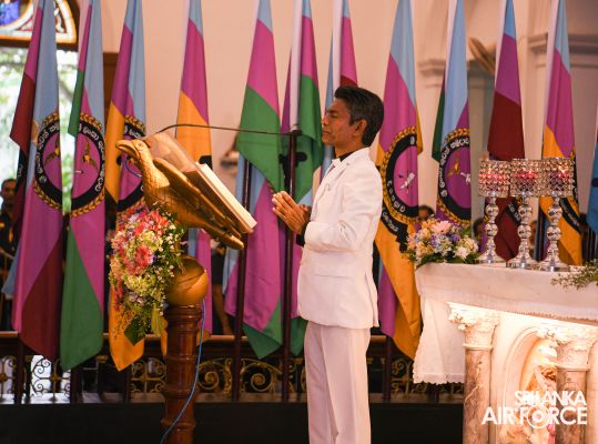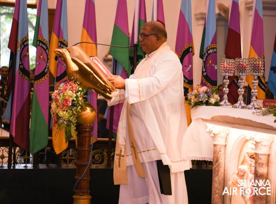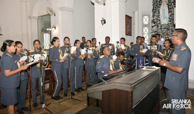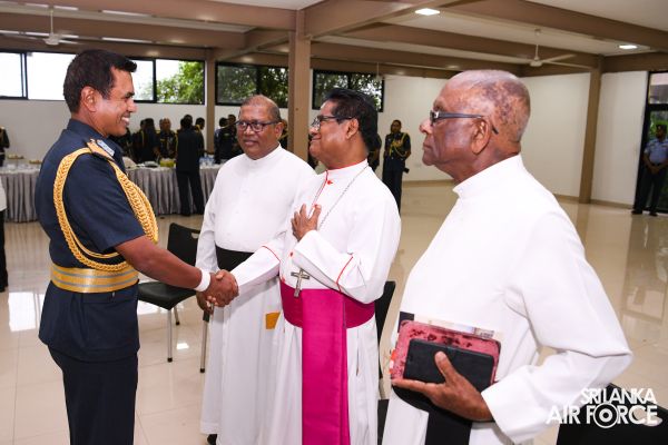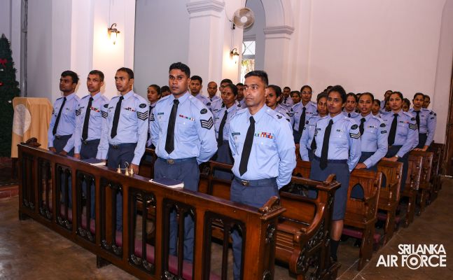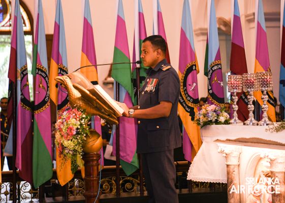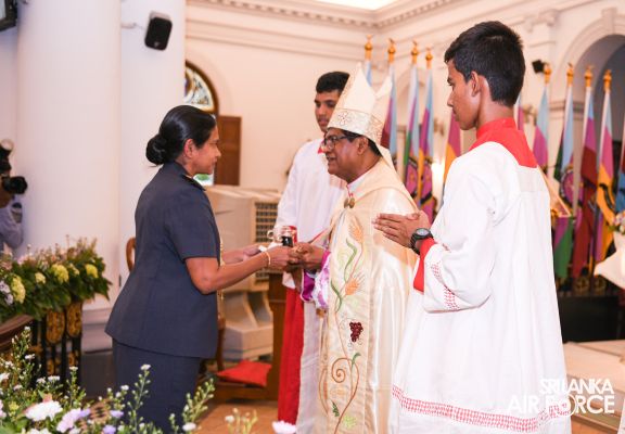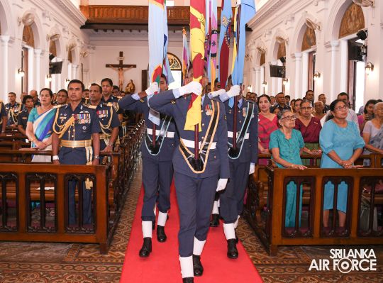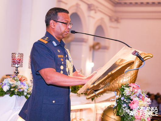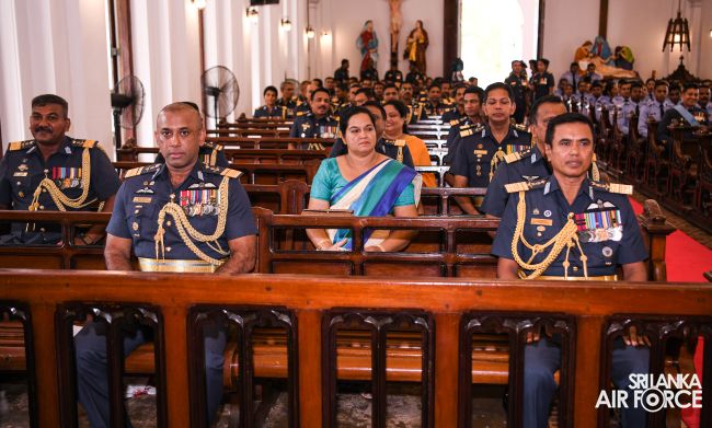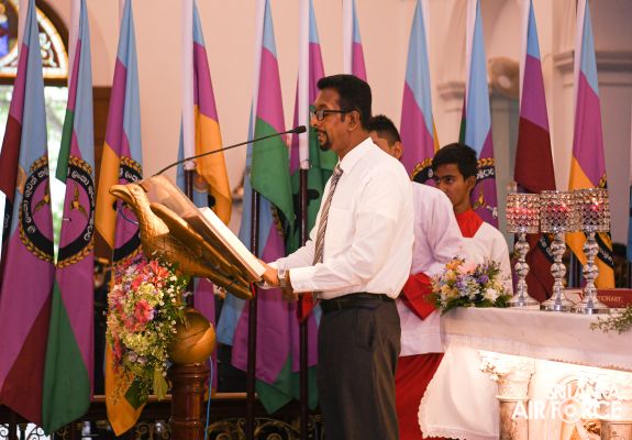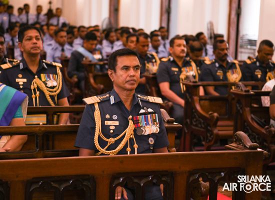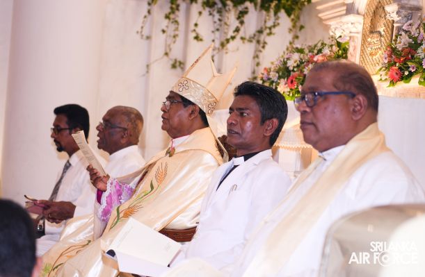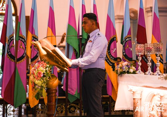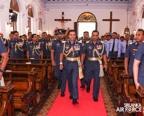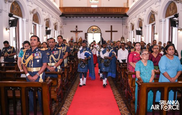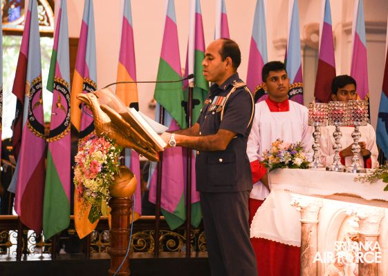 The ceremony commenced with bagpipers leading the Officiating Clergy to the Alter. Christian clergy representing all major sects of the Christian faith participated at the service, invoking divine blessings on the Commander of the Air Force and all members so that they may continue to protect and defend the skies above Sri Lanka. Air Commodore Gihan Senaviratne delivered the welcome address. Wing Commander Ruwan Goonewardene read the prayer of dedication, while Squadron Leader Shakya Wickremasinghe conducted the First Reading in Sinhala and Warrant Officer Rajkumara M conducted the Second Reading in Tamil.