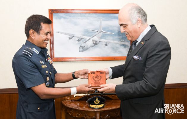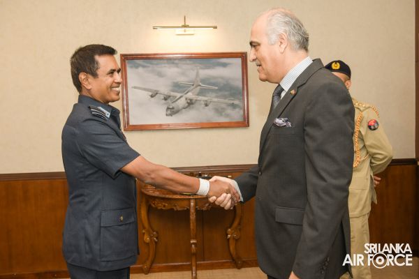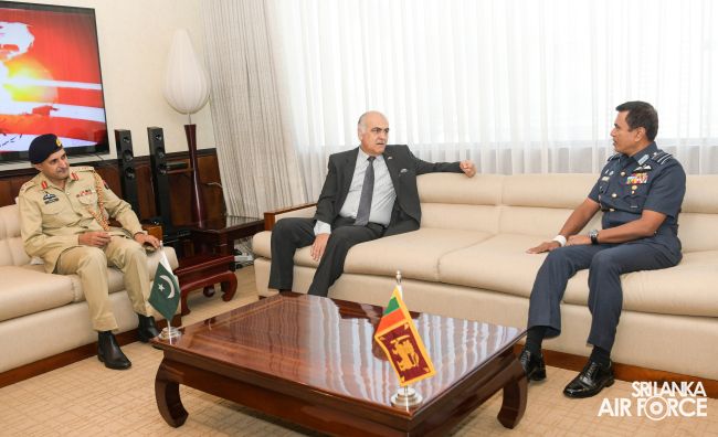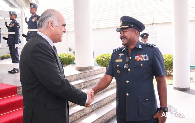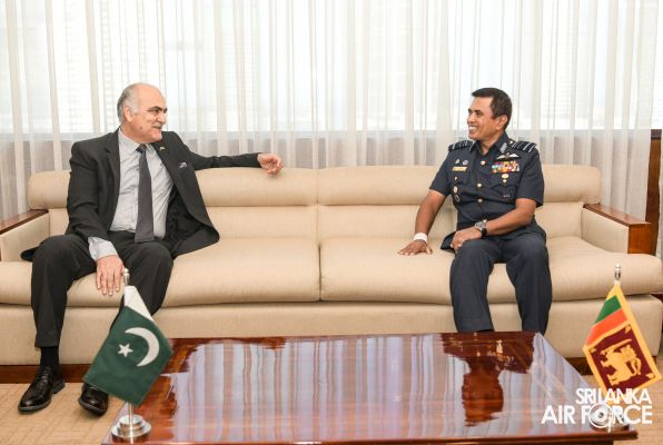The High Commissioner for the Islamic Republic of Pakistan in Sri Lanka, Major General Umar Farooq Burki (Retd) called on the Commander of the Air Force, Air Marshal Udeni Rajapaksa at Air Force Headquarters today (12 July 2023).