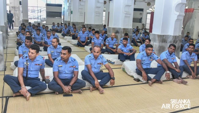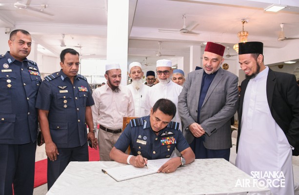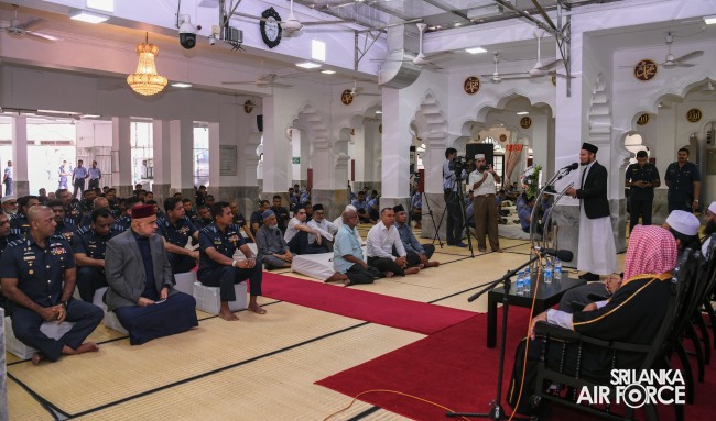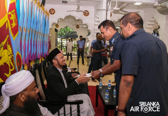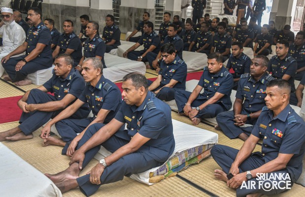 The Annual Islamic Religious Ceremony of the SLAF was held at the Kollupitiya Jummah Mosque this morning (19 July 2023). The Commander of the Sri Lanka Air Force, Air Marshal Udeni Rajapaksa, graced the event as the Chief Guest.