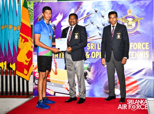 The ceremony was attended by various dignitaries, including the Director of Sports, Group Captain WASB Weerasekara, Chairman of SLAF Table Tennis, Group Captain MF Jansen, Members of the Air Force Sports Council and other invitees.