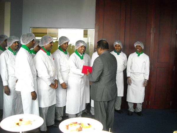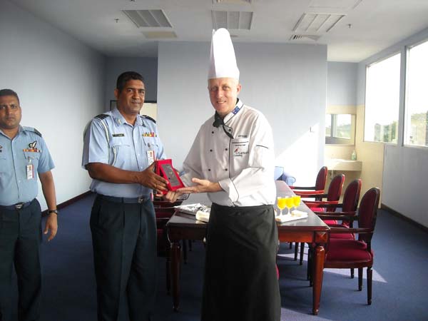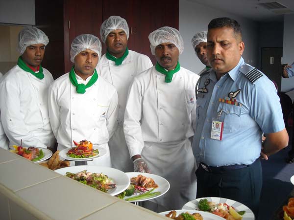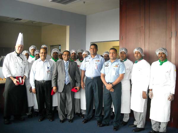 Sri Lankan Catering Production Manager Mr.Pandey and Executive Chef Mr. Anthony conducted the programme for the Air Force personnel, which included subjects such as Hot Kitchen, Cold Kitchen, Bakery, Confectionery, Finger Foods, Food Safety, and Food Hygiene.